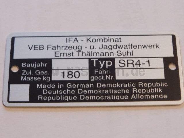 Typenschild Simson SR4-1 Spatz