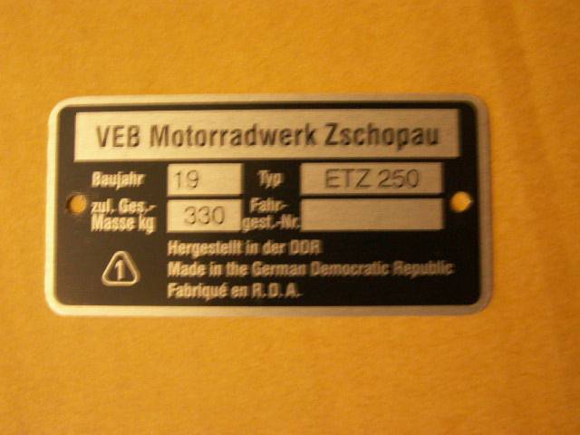 Typenschild ETZ 250