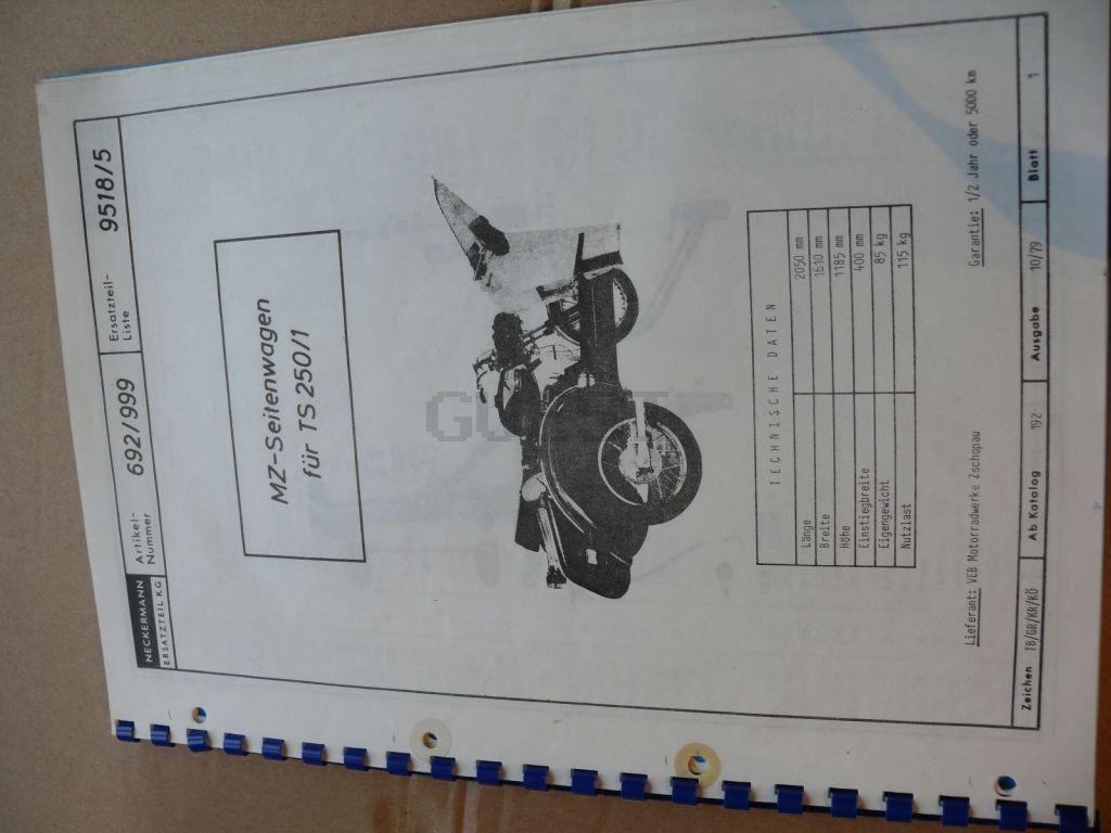 Ersatzteil-Katalog TS125(MZ) mit Drehzahlmesser NECKERMANN