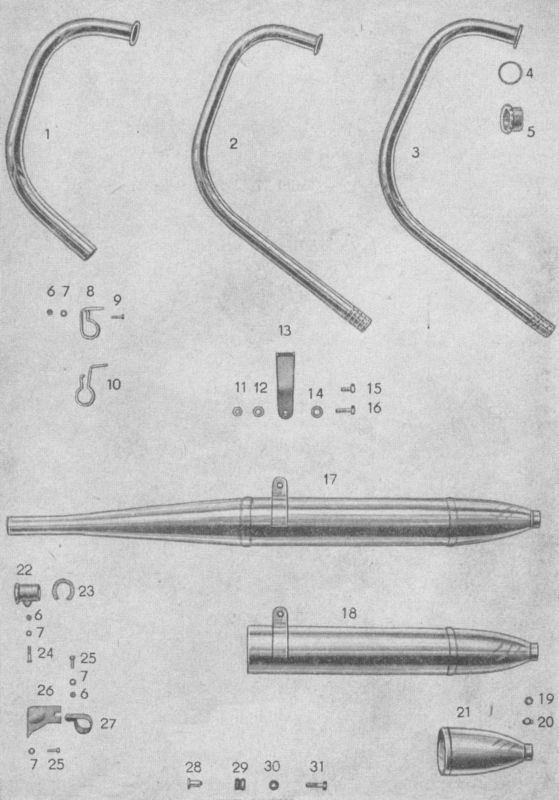 Auspuff dreiteilig in Zigarrenform D=30mm, verchromt, 1.Qualität passend für AWO 425T, 425S
