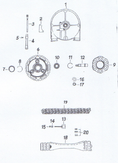 En cas de montage sur une TS ou une ES, la chaîne et le pignon avant doivent également être remplacés par des versions ETZ, car le corps de l'amortisseur est équipé d'un large pignon, comme celui utilisé sur l'ETZ. Sur les ES/TS, cela ne correspond pas à la chaîne étroite.